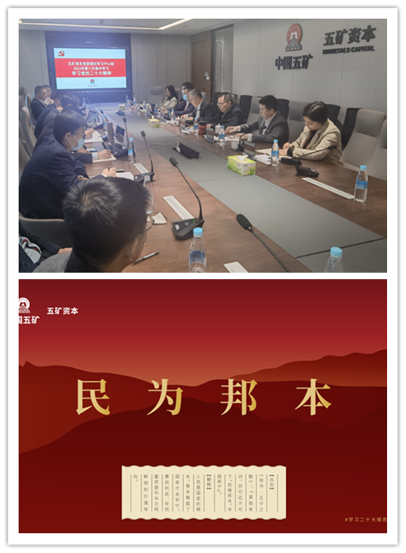五礦資本黨委把學(xué)習(xí)黨的二十大精神作為當(dāng)前和今后一個(gè)時(shí)期的首要政治任務(wù),確保從上到下扎實(shí)推進(jìn)、取得實(shí)效。一是黨委班子帶頭,迅速掀起學(xué)習(xí)宣貫熱潮。以黨委會(huì)“第一議題”、黨委理論學(xué)習(xí)中心組集中學(xué)習(xí)、黨委書(shū)記講黨課等方式認(rèn)真做好喜迎黨的二十大、黨的二十大精神專題學(xué)習(xí)系列活動(dòng)。黨委書(shū)記帶頭為全體干部職工講授專題黨課,領(lǐng)學(xué)黨的十九屆七中全會(huì)精神,為迎接黨的二十大預(yù)熱;通過(guò)黨委會(huì)“第一議題”、黨委理論中心組聯(lián)學(xué)等多種方式,原原本本學(xué)習(xí)黨的二十大報(bào)告和黨章。二是認(rèn)真落實(shí)“把青年工作作為戰(zhàn)略性工作來(lái)抓”的要求,多措并舉激發(fā)青年員工學(xué)習(xí)黨的二十大精神的主動(dòng)性和自覺(jué)性。通過(guò)黨支部主題黨日活動(dòng)、團(tuán)委專題學(xué)習(xí)會(huì)、談心談話等方式,交流學(xué)習(xí)黨的二十大精神的心得體會(huì),并引導(dǎo)青年員工把黨的中心任務(wù)、五礦資本戰(zhàn)略轉(zhuǎn)型目標(biāo)、所在部門的職責(zé)任務(wù)與個(gè)人找差距、補(bǔ)短板、抓落實(shí)有機(jī)結(jié)合起來(lái),形成清晰、準(zhǔn)確、可行的學(xué)習(xí)貫徹落實(shí)閉環(huán)。三是堅(jiān)持潤(rùn)物細(xì)無(wú)聲的宣貫方式,把黨的二十大報(bào)告中的重要內(nèi)容以多種方式呈現(xiàn)出來(lái)。公司黨委以體現(xiàn)中華文明智慧結(jié)晶的十個(gè)古語(yǔ)為主題制作了系列宣傳海報(bào),在公司內(nèi)網(wǎng)登錄頁(yè)面、辦公場(chǎng)所電子屏等場(chǎng)景中不間斷展現(xiàn),促進(jìn)廣大員工進(jìn)一步堅(jiān)定歷史自信和文化自信,夯實(shí)馬克思主義中國(guó)化時(shí)代化的群眾基礎(chǔ)。